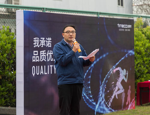 制造中心總監(jiān)劉焱南總發(fā)表演講,他強(qiáng)調(diào),品質(zhì)優(yōu)先是從我們每一個(gè)人做起,從我們的思想意識(shí)中就認(rèn)識(shí)到品質(zhì)的高度重要性,我們要遵守工藝紀(jì)律,嚴(yán)格按照我們標(biāo)準(zhǔn)作業(yè)指導(dǎo)書來進(jìn)行,每一個(gè)步驟嚴(yán)格遵守,使得我們做出來的產(chǎn)品,都是合格品。