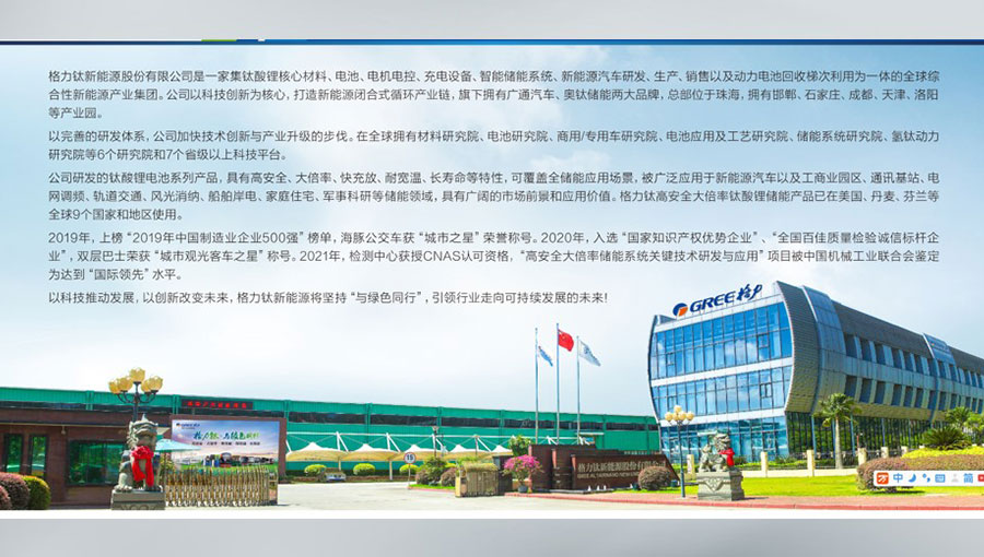 格力鈦新能源股份有限公司是一家集鈦酸鋰核心材料、電池、電機(jī)電控、充電設(shè)備、智能儲能系統(tǒng)、新能源汽車研發(fā)、生產(chǎn)、銷售以及動力電池回收梯次利用為一體的全球綜合性新能源產(chǎn)業(yè)集團(tuán)。格力鈦新能源以科技創(chuàng)新為核心,打造新能源閉合式循環(huán)產(chǎn)業(yè)鏈,旗下?lián)碛袕V通汽車、奧鈦儲能兩大品牌,總部位于珠海,擁有邯鄲、石家莊、成都、天津、洛陽等產(chǎn)業(yè)園。