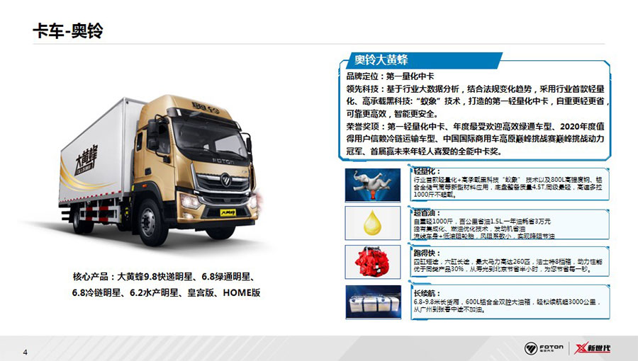 2020年,福田汽車三年行動計(jì)劃順利收官,2021年,福田汽車將躍升至一個(gè)新的發(fā)展高度,品牌向上,在技術(shù)突破、產(chǎn)品升級、營銷模式、服務(wù)理念等方面引領(lǐng)行業(yè)發(fā)展,開啟中國商用車“X新世代”。