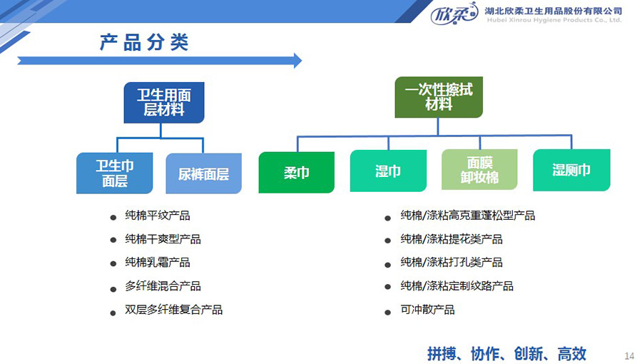 欣柔是以一次性醫(yī)衛(wèi)及生活用非織造材料為主導(dǎo),同時(shí)集生產(chǎn)銷(xiāo)售醫(yī)衛(wèi)用脫脂纖維和擦拭類(lèi)終端產(chǎn)品的高新技術(shù)企業(yè),欣柔秉承“人才為本,科技領(lǐng)先,用戶至上”的經(jīng)營(yíng)理念,努力打造成為一家以研發(fā)創(chuàng)新為驅(qū)動(dòng)力,以功能型、差異化產(chǎn)品為牽引力的專業(yè)醫(yī)衛(wèi)用非織造材料供應(yīng)商及生活用品提供商。