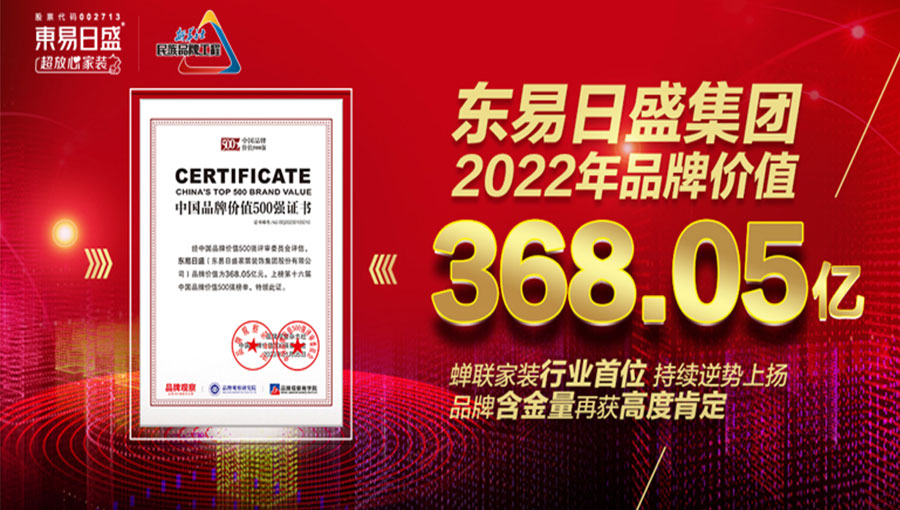 東易日盛家居裝飾集團股份有限公司始創(chuàng)于1997年,目前已發(fā)展為一家專業(yè)化、品牌化、數(shù)字化、規(guī)模化、產業(yè)化的大型上市家裝集團公司(股票代碼:002713),連續(xù)多年居于《中國最具價值品牌500強》家裝行業(yè)前列,品牌價值高達368.05億元。
