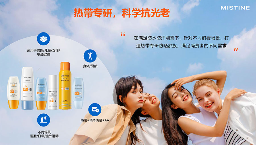 未來,Mistine蜜絲婷將繼續(xù)在防曬品類中大步闊行,專注產(chǎn)品研發(fā)和創(chuàng)新。在深挖“防曬”品類的同時(shí),Mistine蜜絲婷也將不斷拓展美妝新品類,以更多創(chuàng)新好用、時(shí)尚的美妝產(chǎn)品,進(jìn)一步搶占美妝賽道的市場(chǎng)份額,成為全球美妝市場(chǎng)的領(lǐng)軍品牌。