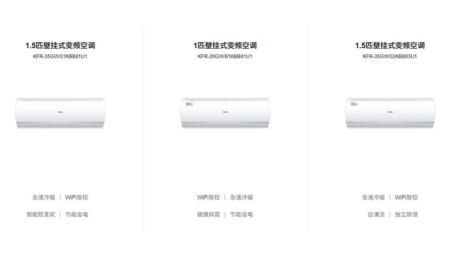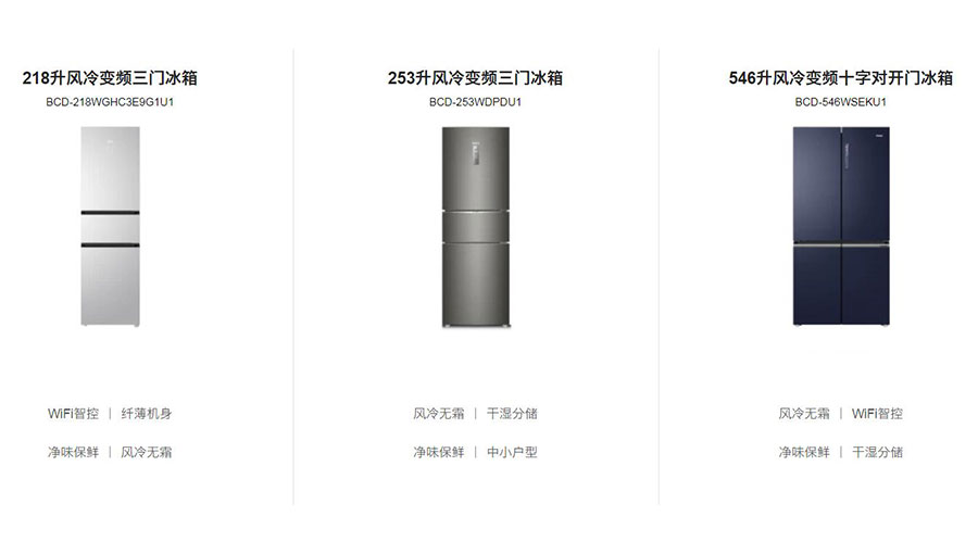 主要產品:海爾全家電