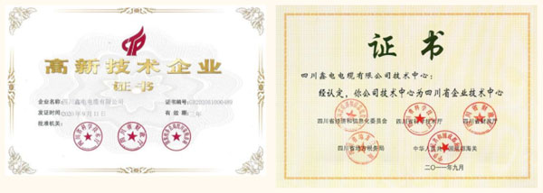 憑借先進的研發(fā)硬件設(shè)施條件和高素質(zhì)研發(fā)人才隊伍,鑫電電纜獲評“國家高新技術(shù)企業(yè)”、“國家和四川省知識產(chǎn)權(quán)優(yōu)勢培育企業(yè)”、“四川省級企業(yè)技術(shù)中心”、“成都市院士(專家)創(chuàng)新工作站”以及“成都環(huán)保型電纜工程技術(shù)研究中心”。