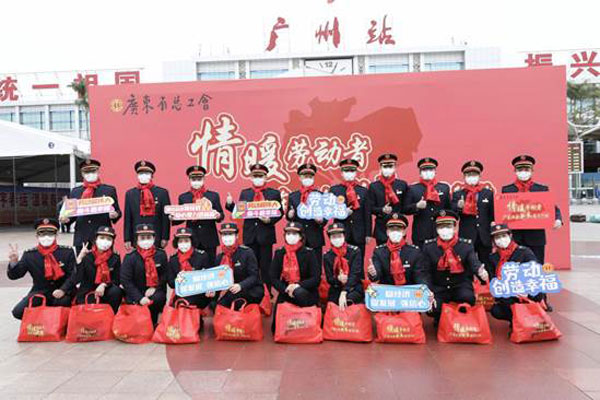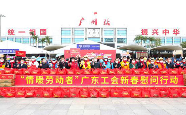 省人大常委會(huì)黨組成員、省總工會(huì)主席呂業(yè)升出席慰問活動(dòng)并向廣大勞動(dòng)者致以親切問候和新春祝福。省總工會(huì)黨組書記、常務(wù)副主席陳偉東,省總工會(huì)黨組成員、副主席杜玲,省總工會(huì)副主席(兼職)、廣州市人大常委會(huì)副主任、市總工會(huì)黨組書記、主席唐航浩等代表廣東工會(huì)向慰問現(xiàn)場(chǎng)的網(wǎng)約配送員、環(huán)衛(wèi)工人、建筑工人以及保障春運(yùn)的保安員、醫(yī)務(wù)人員、公安干警、鐵路客運(yùn)服務(wù)人員等職工代表送上新春慰問大禮包。廣州市總工會(huì)及越秀區(qū)總工會(huì)相關(guān)領(lǐng)導(dǎo)參加了慰問活動(dòng)。