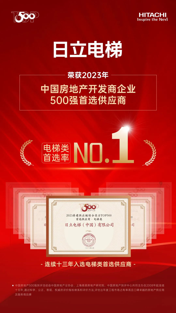 3月23日,2023房地產(chǎn)開發(fā)企業(yè)綜合實(shí)力測評成果正式發(fā)布, “2023中國房地產(chǎn)開發(fā)企業(yè)綜合實(shí)力TOP500”“TOP500房企首選供應(yīng)商”等測評榜單揭曉,日立電梯以電梯品牌首選率18%,再次位居中國房地產(chǎn)Top500首選電梯類供應(yīng)商榜首。