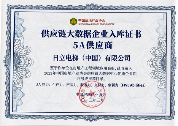 同時(shí),日立電梯憑借在“生產(chǎn)力、產(chǎn)品力、服務(wù)力、交付力、創(chuàng)新力”的出色表現(xiàn),成為中國房地產(chǎn)業(yè)協(xié)會(huì)供應(yīng)鏈大數(shù)據(jù)中心“5A供應(yīng)商” 入庫企業(yè)。