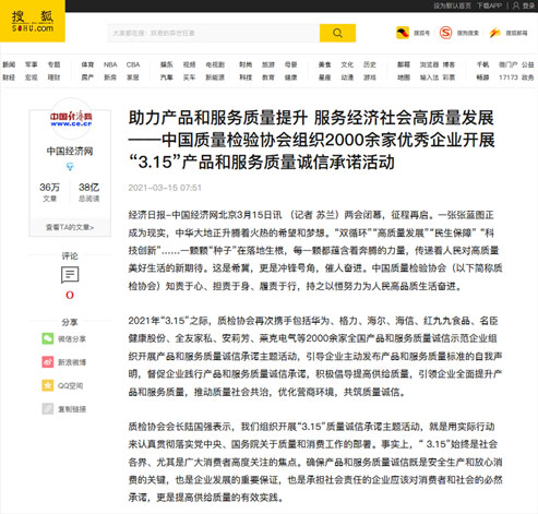 中國經(jīng)濟(jì)網(wǎng):傳遞質(zhì)量信任、引導(dǎo)質(zhì)量消費(fèi),我們堅(jiān)持在行動(dòng)!——中國質(zhì)量檢驗(yàn)協(xié)會(huì)組織2000余家優(yōu)秀企業(yè)在2021年“3.15”開展產(chǎn)品和服務(wù)質(zhì)量誠信承諾主題活動(dòng)