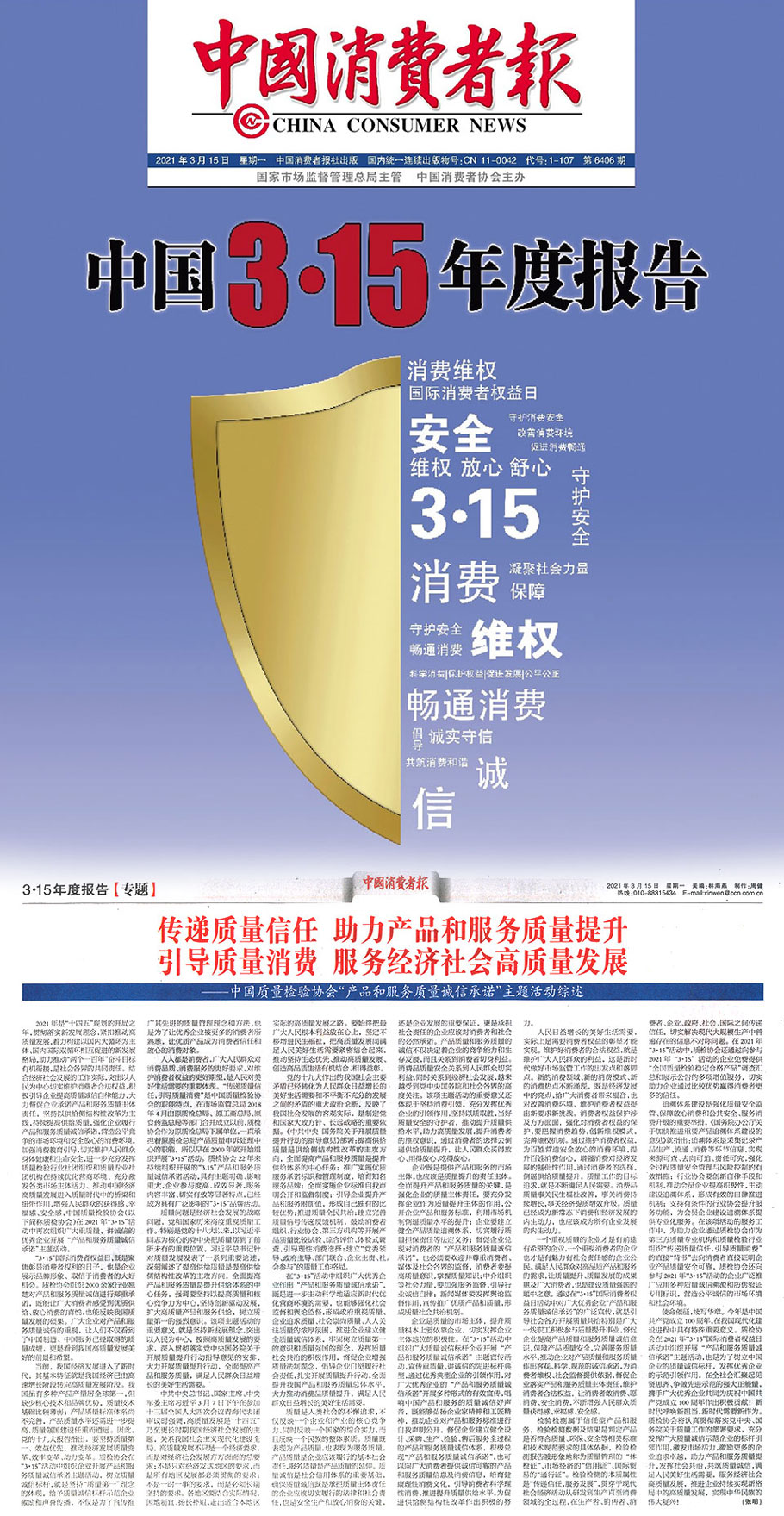 2021年“3.15”國際消費(fèi)者權(quán)益日“產(chǎn)品和服務(wù)質(zhì)量誠信承諾”主題活動(dòng)相關(guān)新聞報(bào)道掠影