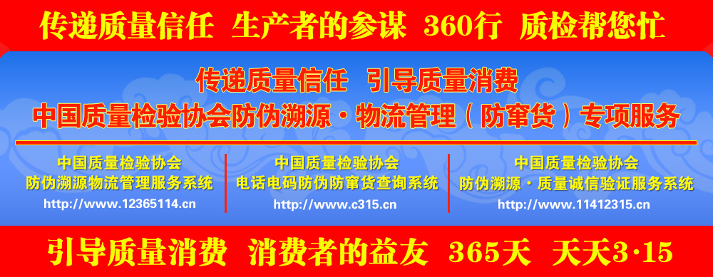 中國經濟網 | 中國消費網 | 中國市場監(jiān)管報 | 中國質量報 | 中國質量檢驗協(xié)會防偽溯源和物流管理服務系統(tǒng) | 各地市場監(jiān)督管理局網站